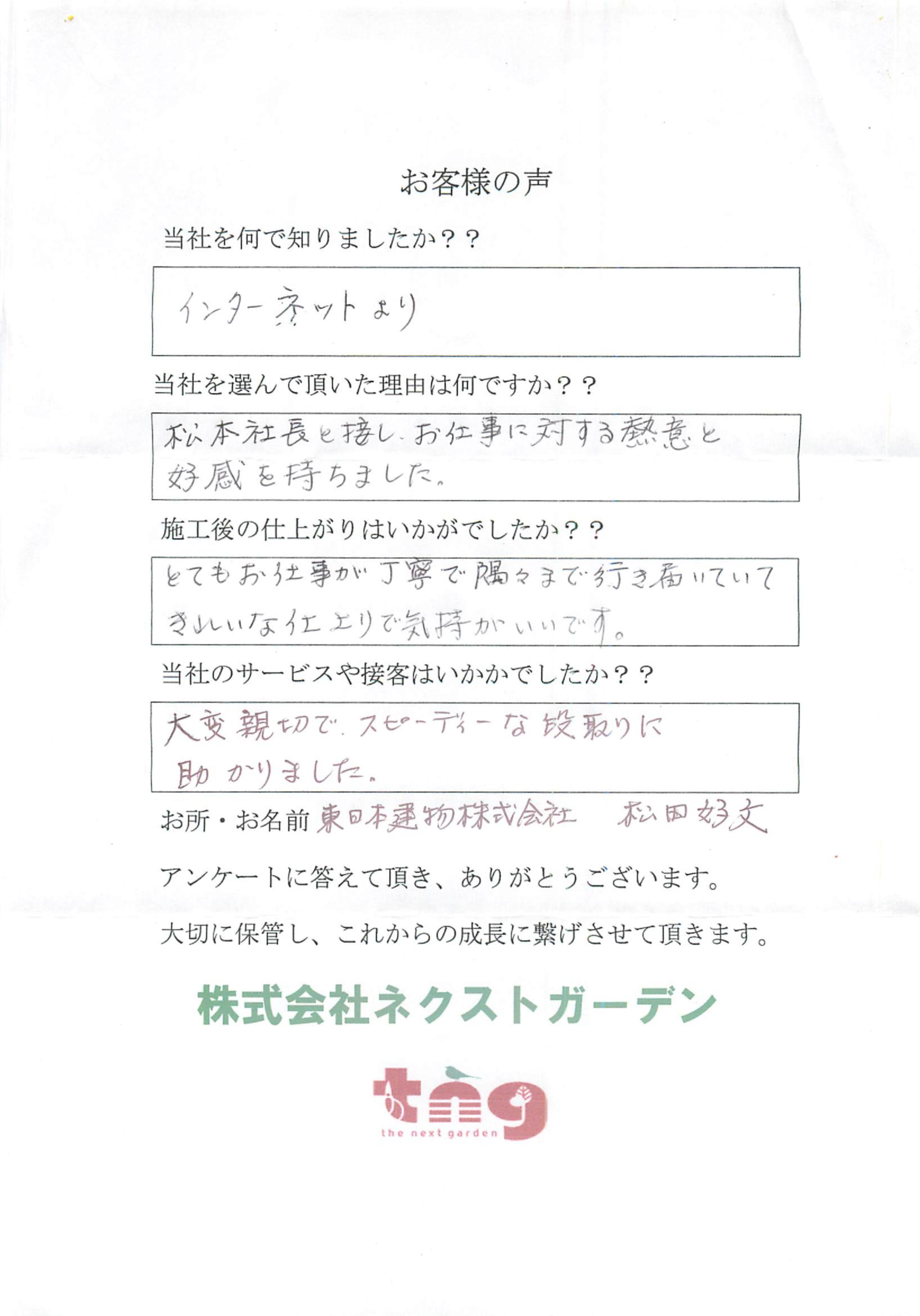 不動産会社社長の松田様からありがたいお言葉を頂きました。