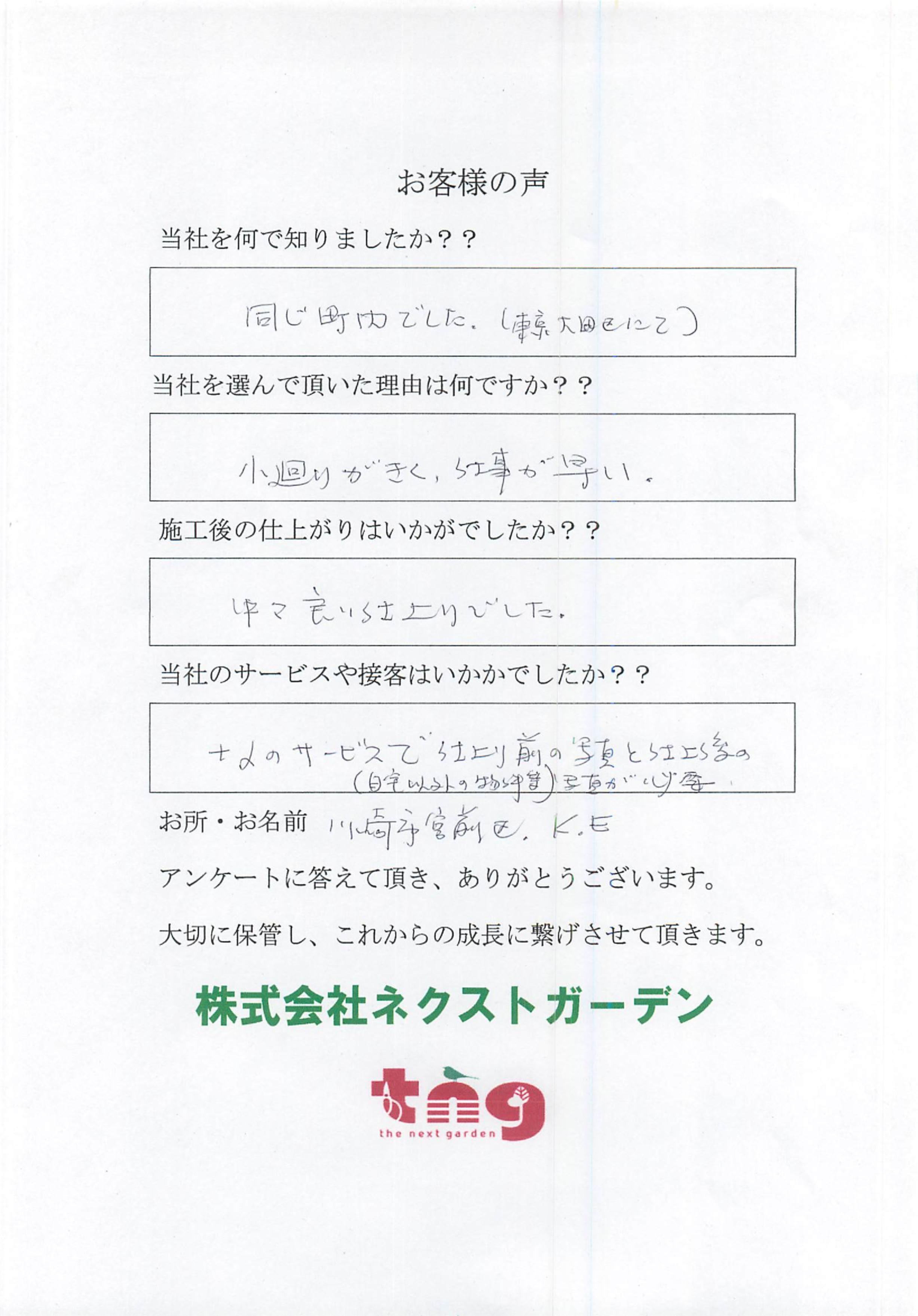 地域密着のため練馬区、杉並区限定で依頼を受けています。