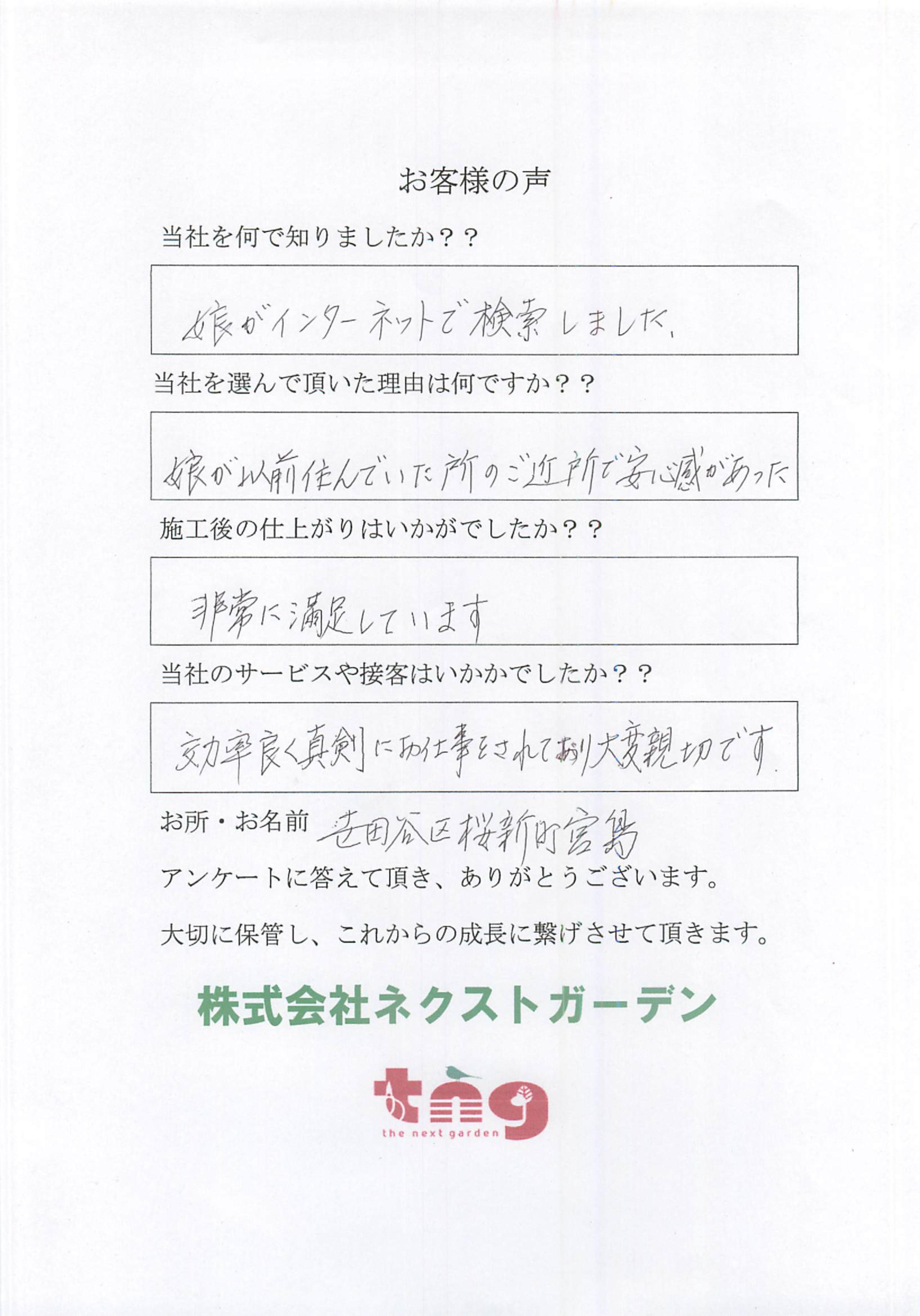 一戸建てを所有されている宮島様からありがたいお言葉をいただきました。