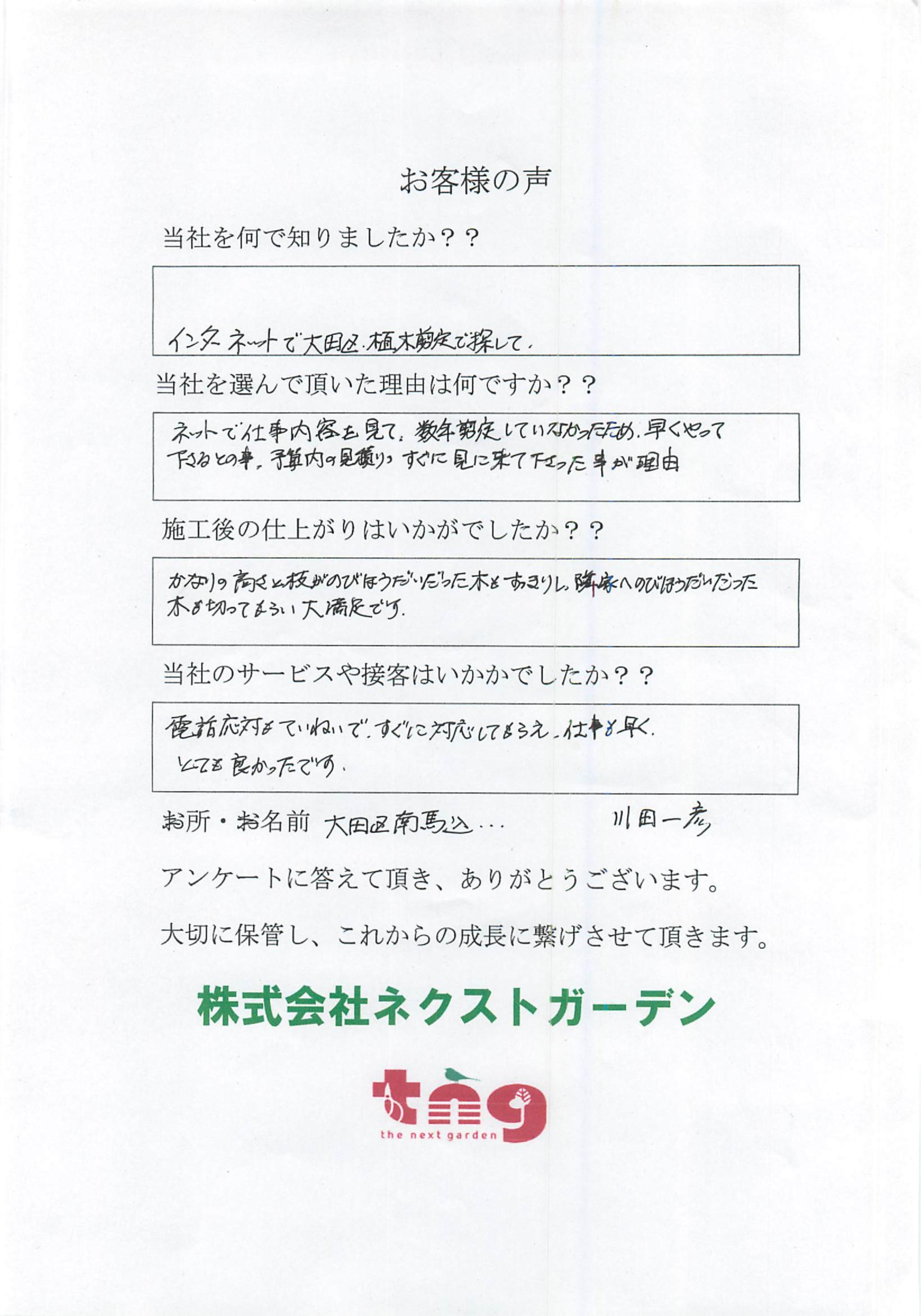 アパートと一戸建てを所有されている川田様からありがたいお言葉をいただきました。
